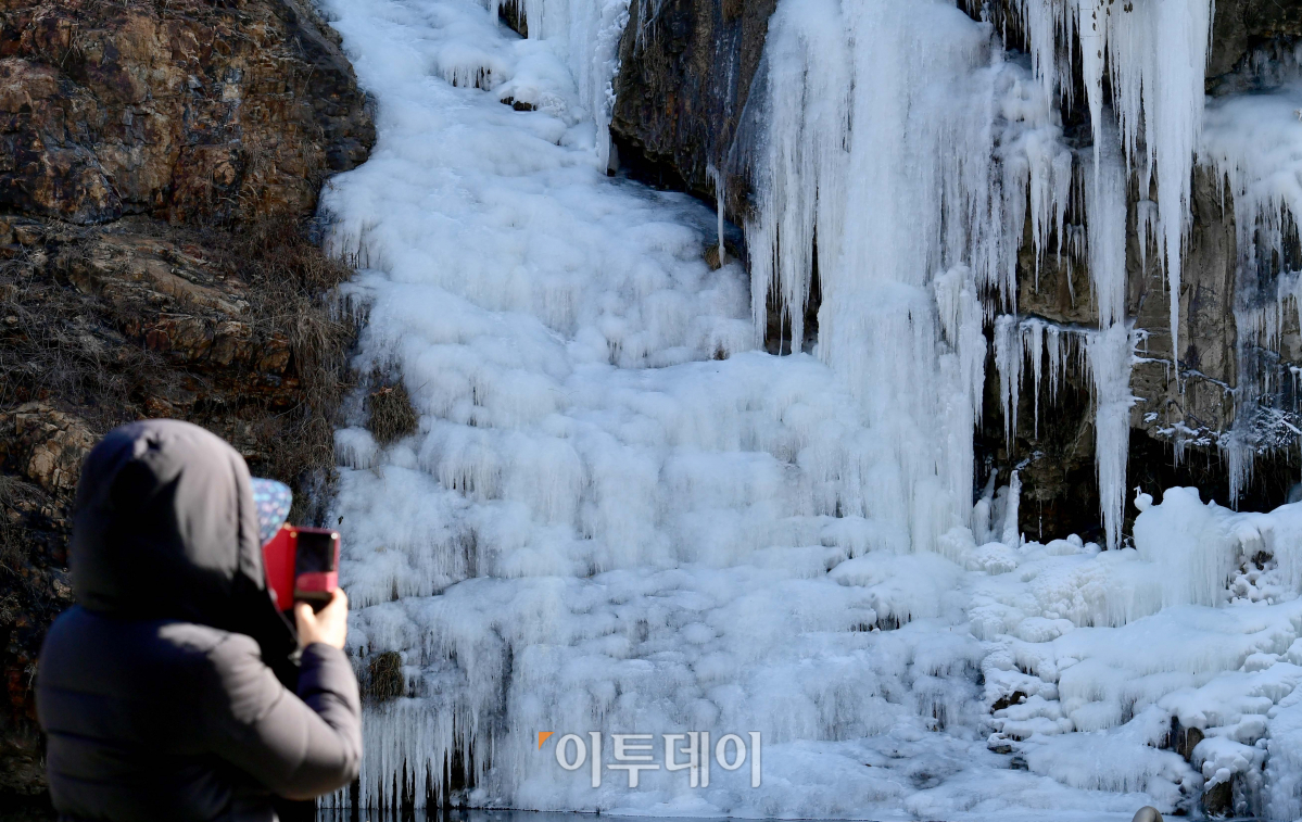 전국에 강추위가 이어지고 있는 가운데 3일 서울 서대문구 홍제천 인공폭포가 얼어붙어 있다. 기상청은 다음 주 수요일 아침 최저기온이 영하 11도를 나타내고 금요일엔 영하 17도까지 곤두박질치는 등 주 중반부터 더욱 강력한 한파가 찾아올 것으로 예상했다.