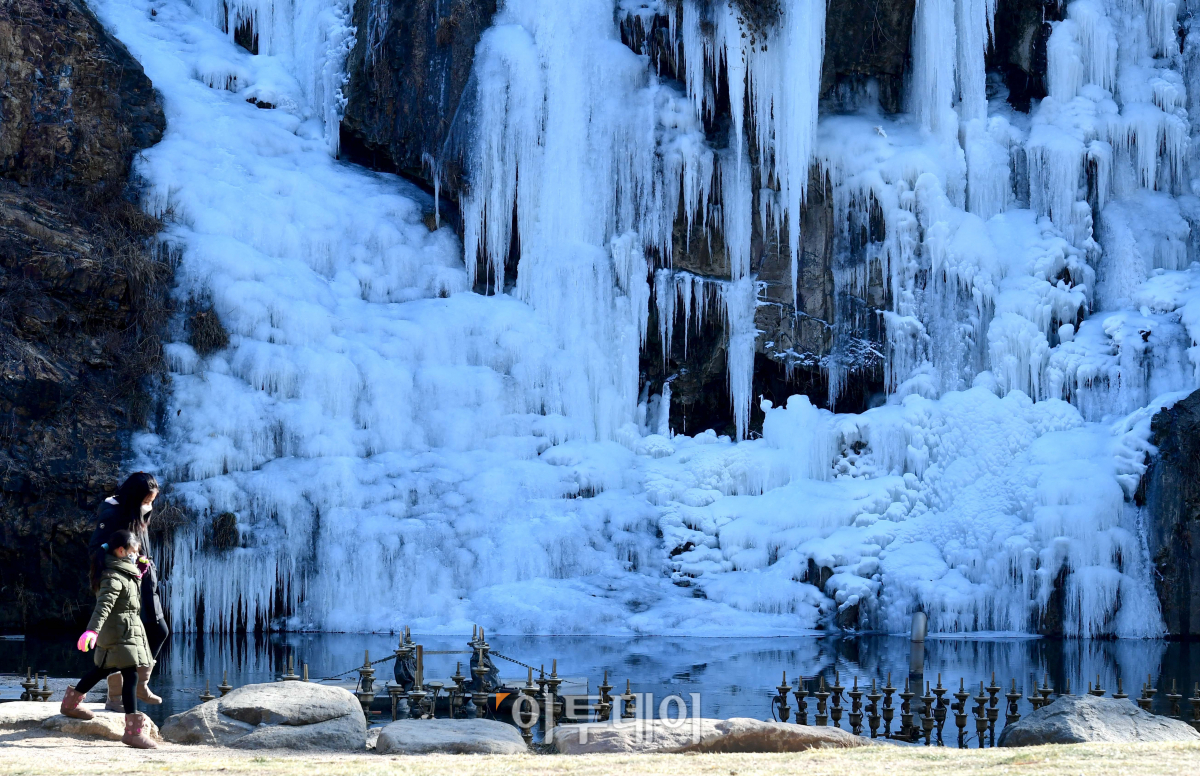 전국에 강추위가 이어지고 있는 가운데 3일 서울 서대문구 홍제천 인공폭포가 얼어붙어 있다. 기상청은 다음 주 수요일 아침 최저기온이 영하 11도를 나타내고 금요일엔 영하 17도까지 곤두박질치는 등 주 중반부터 더욱 강력한 한파가 찾아올 것으로 예상했다.
