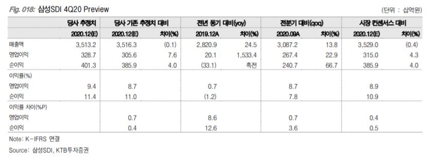 KTB투자증권은 4일 삼성SDI에 대해 전기차(EV) 배터리 수익성이 올해부터 흑자전환이 추정된다며 목표주가를 73만 원으로 상향하고 투자의견은 '매수'를 유지했다.
