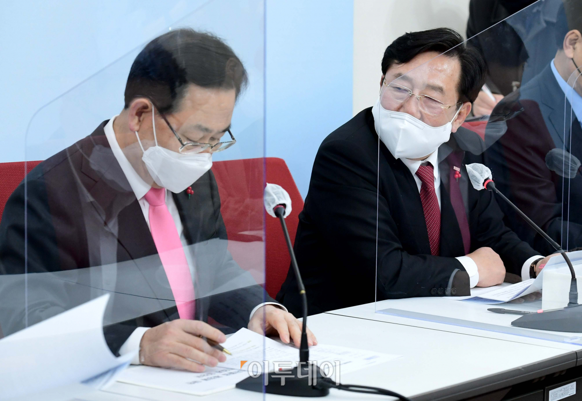 김기문 중소기업중앙회장이 4일 서울 여의도 국회에서 열린 ‘국민의힘-중소기업단체협의회 단체장’ 간담회에서 중대재해기업처벌법 제정에 대한 중소기업계 입장을 밝히고 있다.