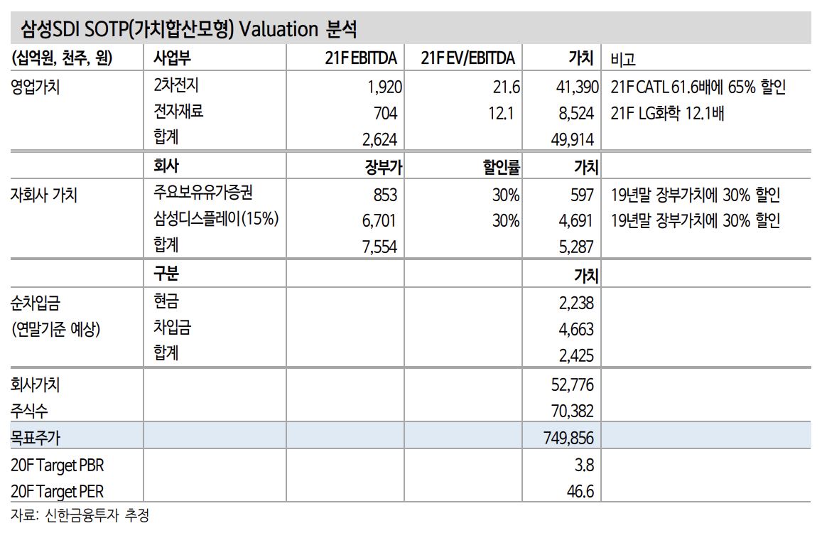 신한금융투자는 글로벌 전기차 패권전쟁이 격화되는 것이 한국 배터리 업체에 호재로 작용할 것으로 판단, 삼성SDI에 대한 ‘매수’ 의견과 함께 목표주가를 75만 원으로 11.9% 상향 조정했다고 5일 밝혔다.