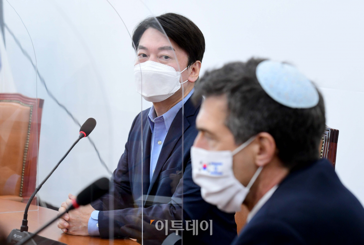 안철수 국민의당 대표가 7일 서울 여의도 국회에서 아키바 토르 주한 이스라엘 대사의 예방을 받고 있다.