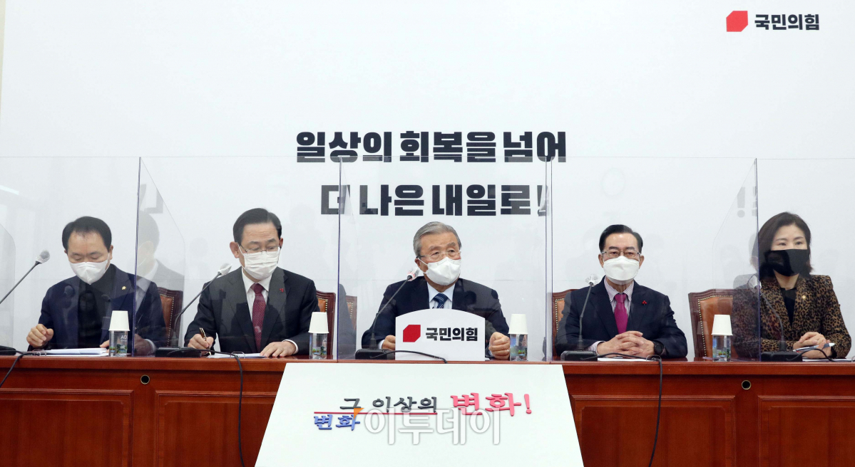 김종인 국민의힘 비대위원장이 11일 오전 서울 여의도 국회에서 열린 비상대책위원회의에서 모두발언을 하고 있다.