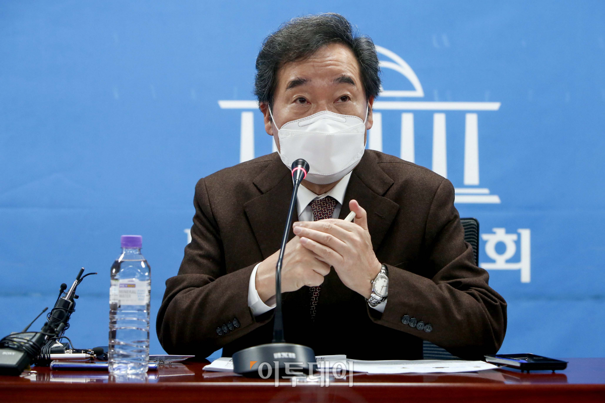 더불어민주당 이낙연 대표가 12일 국회 의원회관에서 열린 코로나치료제 개발현황 점검간담회에서 발언하고 있다.