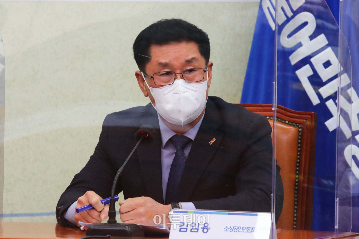 김임용 소상공인연합회 회장 직무대행이 12일 국회에서 열린 더불어민주당 당대표-소상공인연합회 간담회에서 모두발언 하고 있다.