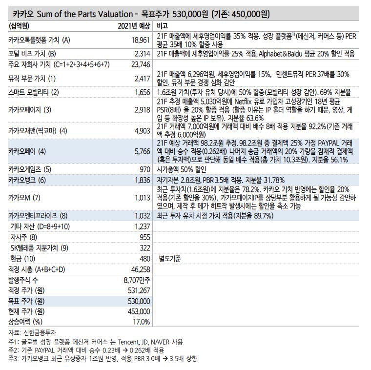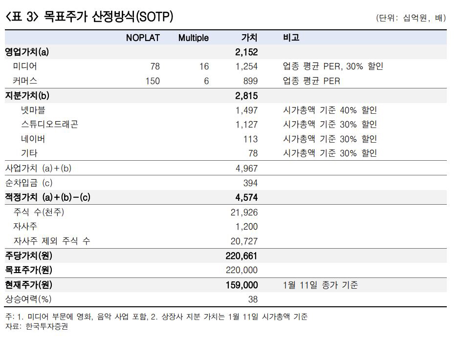 이어 그는“‘매수’의견을 유지하기 위해서는 목표주가가 현 주가보다 높아야 하는데, 회사의 본질적인 사업 가치가 높아지는 게 아니면 주가 상승의 근거를 마련하기 위해서는 고평가를 적용할 수 있는 지표를 활용해야 한다”고 말했다.