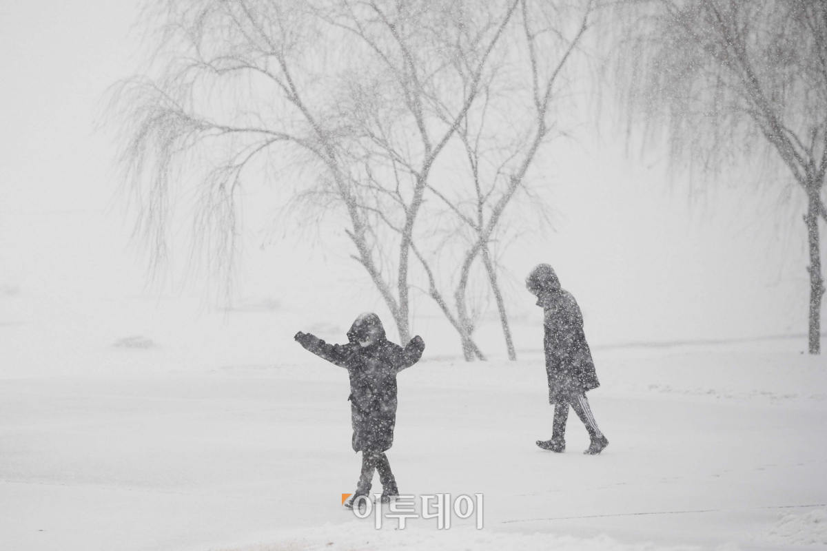 [포토] 여의도한강공원에서 '눈' 맞으며
