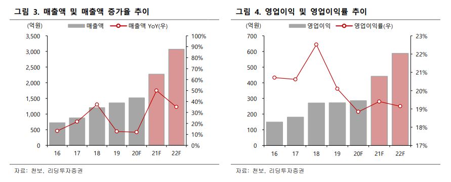 리딩투자증권은 천보의 4분기 연결 예상 매출액은 411억 원, 영업이익은 80억 원을 시현할 것으로 전망했다.