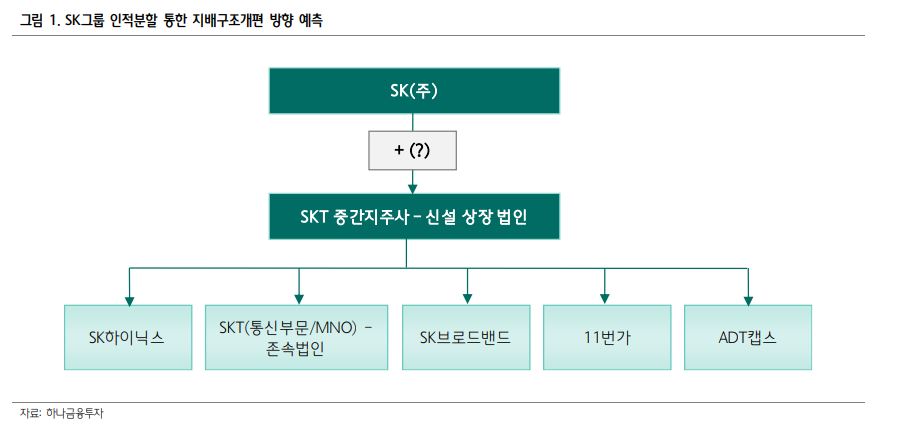 SKT는 SK하이닉스 보유 지분 상향을 통해 SKT를 통신과 지주회사로 분할한 후 정보통신기술(ICT)과 제조 부문 계열사를 아우른다는 구상이다.