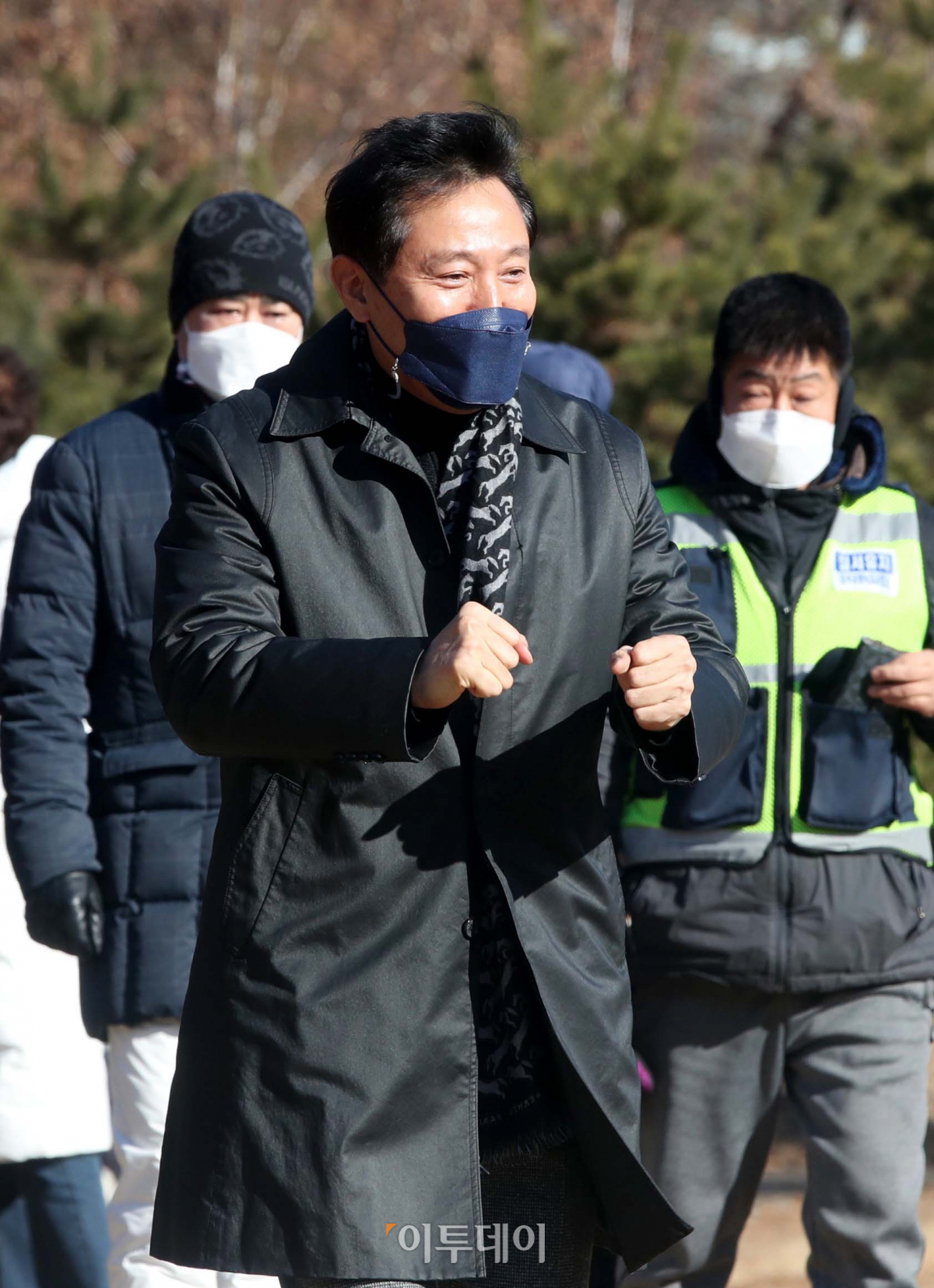 국민의힘 소속 오세훈 전 서울시장이 17일 오전 서울 강북구 북서울꿈의숲에서 기자회견을 열고 서울시장 보궐선거 출마를 선언하고 있다. 국회사진취재단