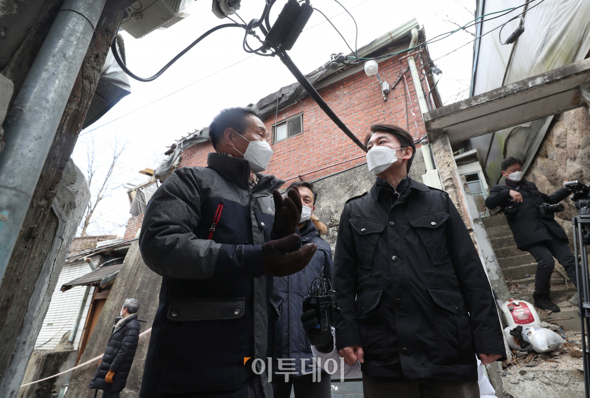서울시장 출마를 선언한 안철수 국민의당 대표가 17일 오후 서울 종로구 사직 제2구역을 찾아 도시재개발이 시급한 서울시민의 주거현장을 점검하고 있다. 국회사진취재단