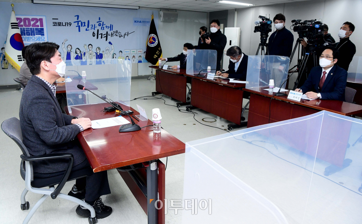 안철수 국민의당 대표가 18일 서울 용산구 대한의사협회에서 열린 ‘코로나19 대응 및 백신 접종 계획 관련 국민의당-대한의사협회 간담회’에서 모두발언을 하고 있다.