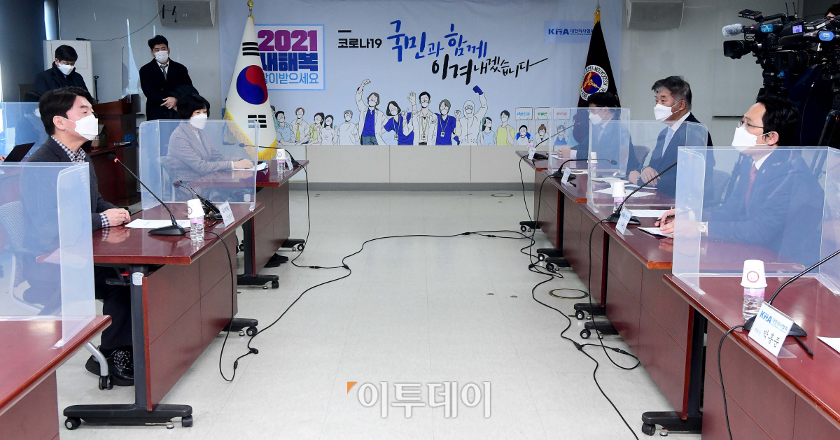 안철수 국민의당 대표가 18일 서울 용산구 대한의사협회에서 열린 ‘코로나19 대응 및 백신 접종 계획 관련 국민의당-대한의사협회 간담회’에서 모두발언을 하고 있다.