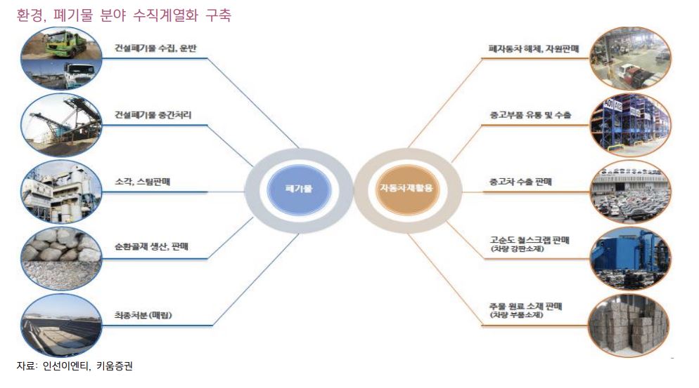 키움증권은 인선이엔티의 실적이 성장세에 진입했다고 19일 판단했다. 인선이엔티는 건설폐기물 수집, 운반, 중간처리와 매립을 주력사업으로 하는 기업이다. 주요 자회사로 폐자동차를 재활용하는 인선모터스와 소각사업을 하는 영흥산업환경이 있다.