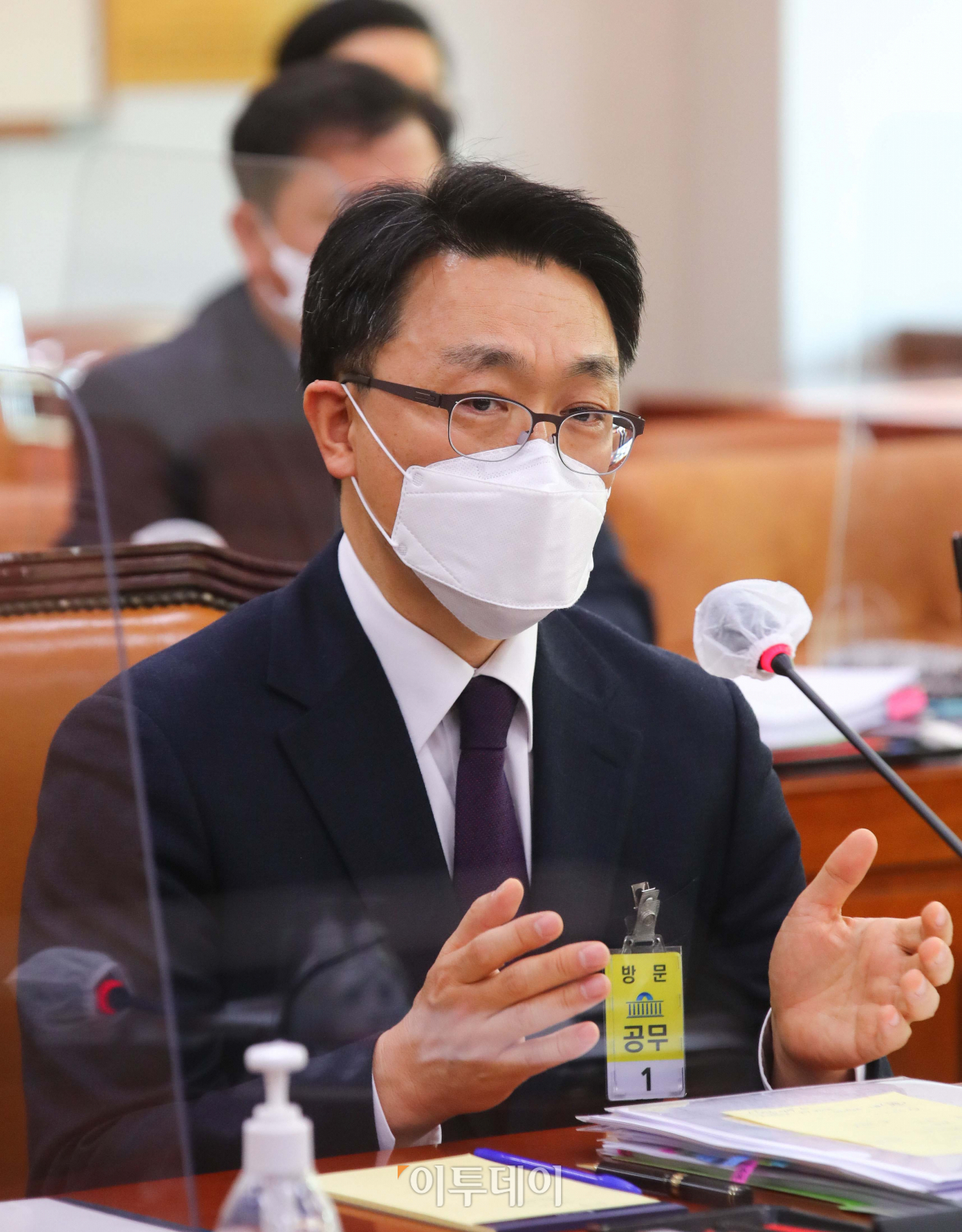 김진욱 고위공직자범죄수사처장 후보자가 19일 국회 법제사법위원회에서 열린 인사청문회에서 의원들의 질문에 답변하고 있다.