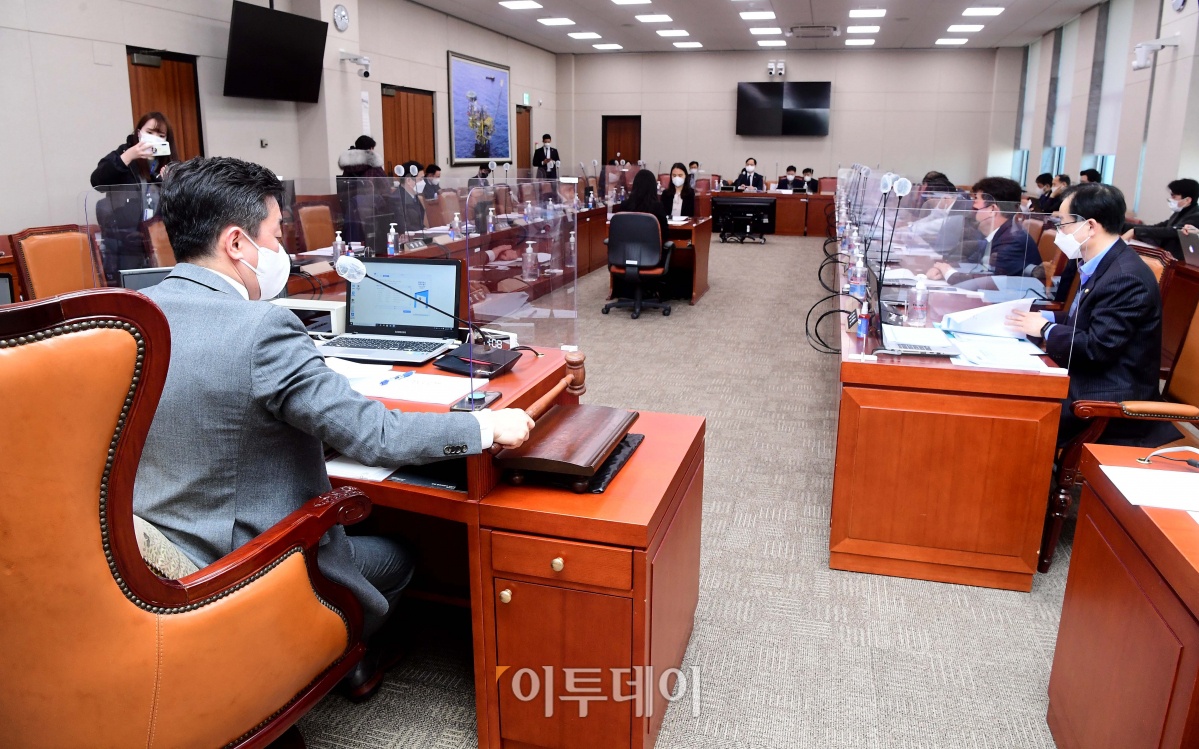 19일 서울 여의도 국회에서 열린 산업통상자원중소벤처기업위원회 중소벤처기업소위원회에서 강훈식 소위원장이 의사봉을 두드리고 있다.
