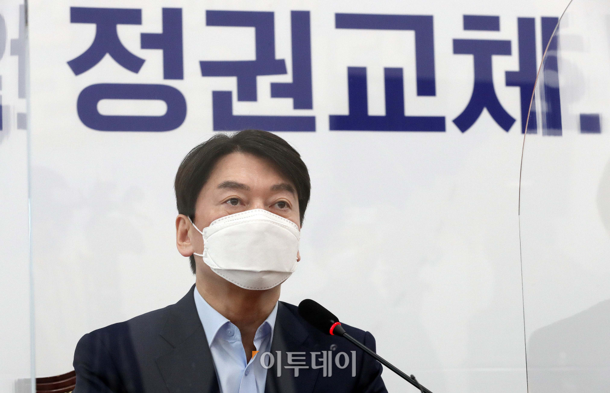 안철수 국민의당 대표가 19일 오후 서울 여의도 국회에서 야권단일화 관련 기자회견을 하고 있다. 안 대표는 "국민의힘 경선플랫폼을 야권 전체에 개방해주십시오"라고 제안하며 야권 승리를 위해 개방형 경선플랫폼에 참여하겠다고 밝혔다.