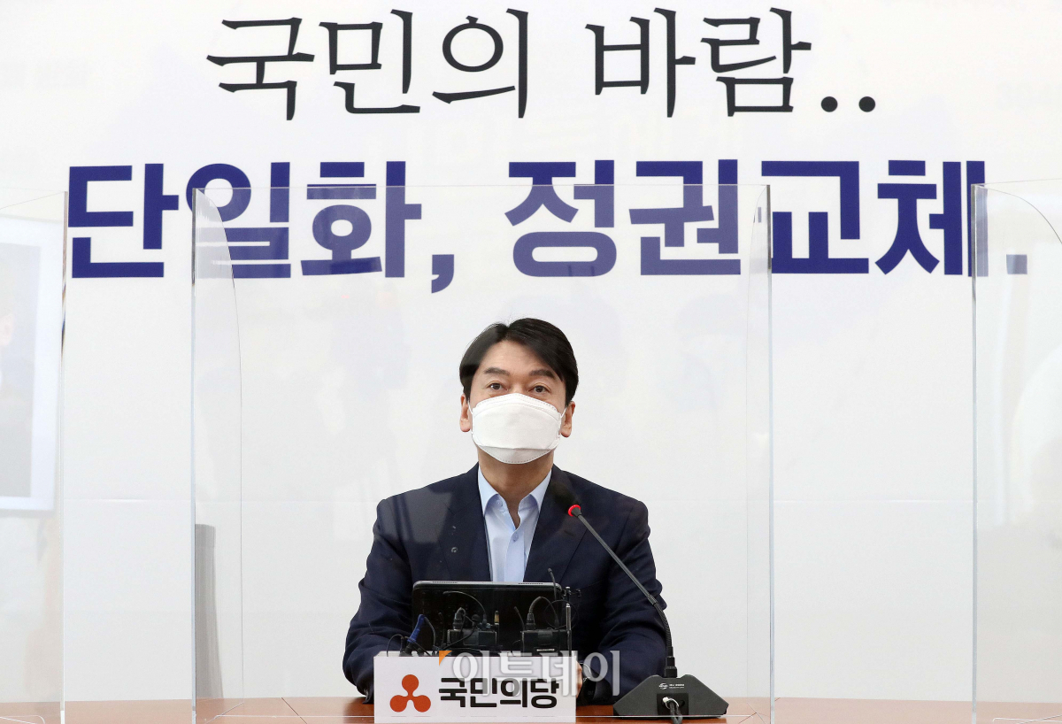 안철수 국민의당 대표가 19일 오후 서울 여의도 국회에서 야권단일화 관련 기자회견을 하고 있다. 안 대표는 "국민의힘 경선플랫폼을 야권 전체에 개방해주십시오"라고 제안하며 야권 승리를 위해 개방형 경선플랫폼에 참여하겠다고 밝혔다.