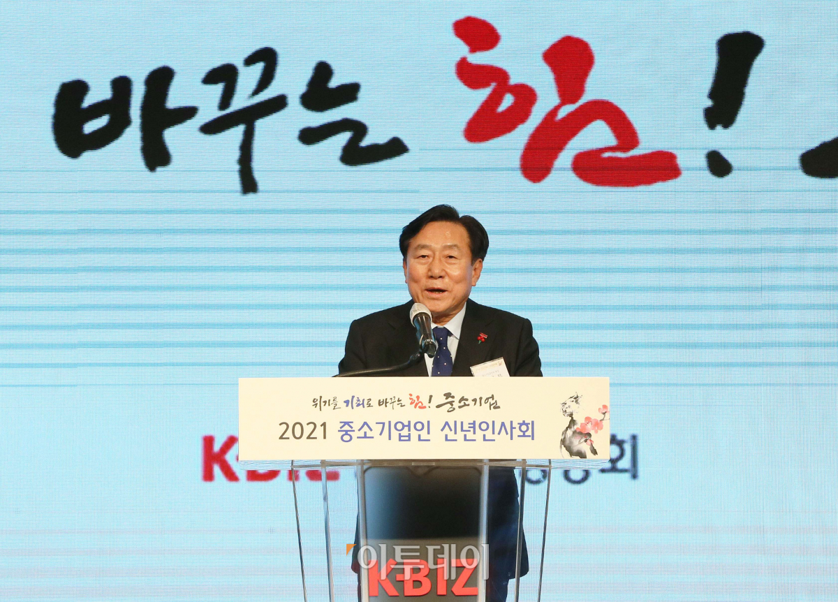 김기문 중소기업중앙회장이 19일 오후 서울 여의도 중소기업중앙회에서 열린 중소기업인 신년 인사회에서 인사말을 하고 있다. 국회사진취재단