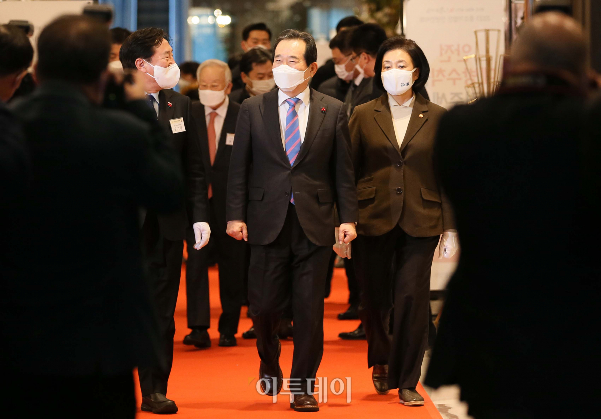 19일 오후 서울 여의도 중소기업중앙회에서 열린 중소기업인 신년 인사회에 정세균 국무총리와 박영선 중소벤처부장관이 입장하고 있다. 국회사진취재단