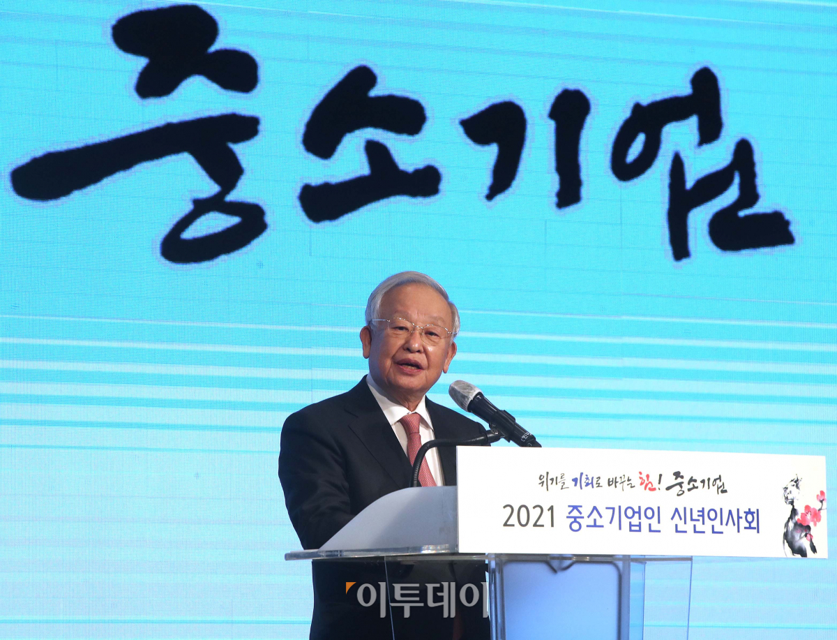 19일 오후 서울 여의도 중소기업중앙회에서 열린 중소기업인 신년 인사회에 손경식 한국경영자총협회 회장이 인사말을 하고 있다. 국회사진취재단