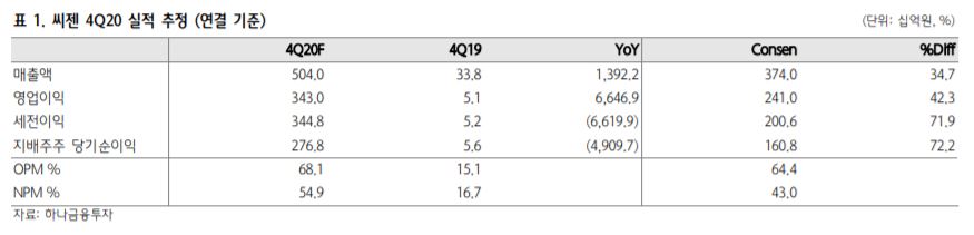 하나금융투자는 씨젠의 4분기 매출액을 연결 기준으로 전년 대비 약 1392% 증가한 5040억 원, 영업이익은 전년 대비 약 6647% 증가한 3430억 원으로 추정했다.