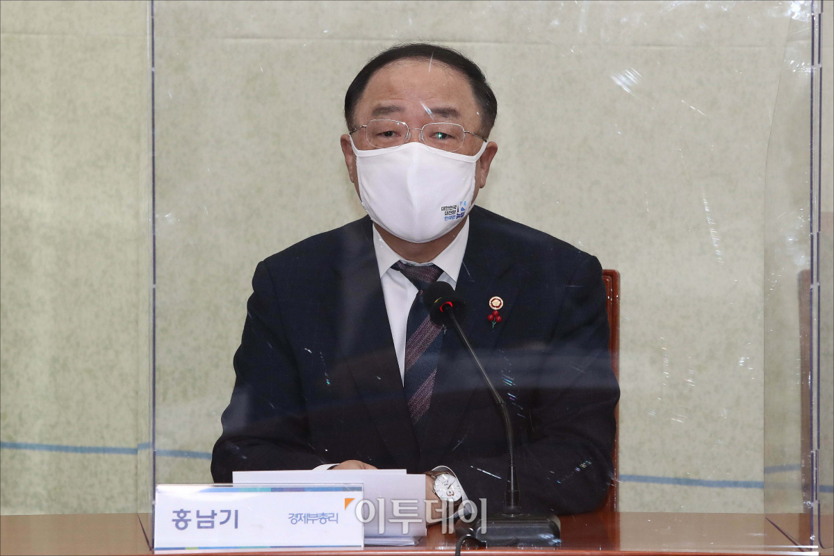 홍남기 경제부총리 겸 기획재정부 장관이 20일 오전 서울 여의도 국회에서 열린 고위당정협의회에서 발언을 하고 있다.