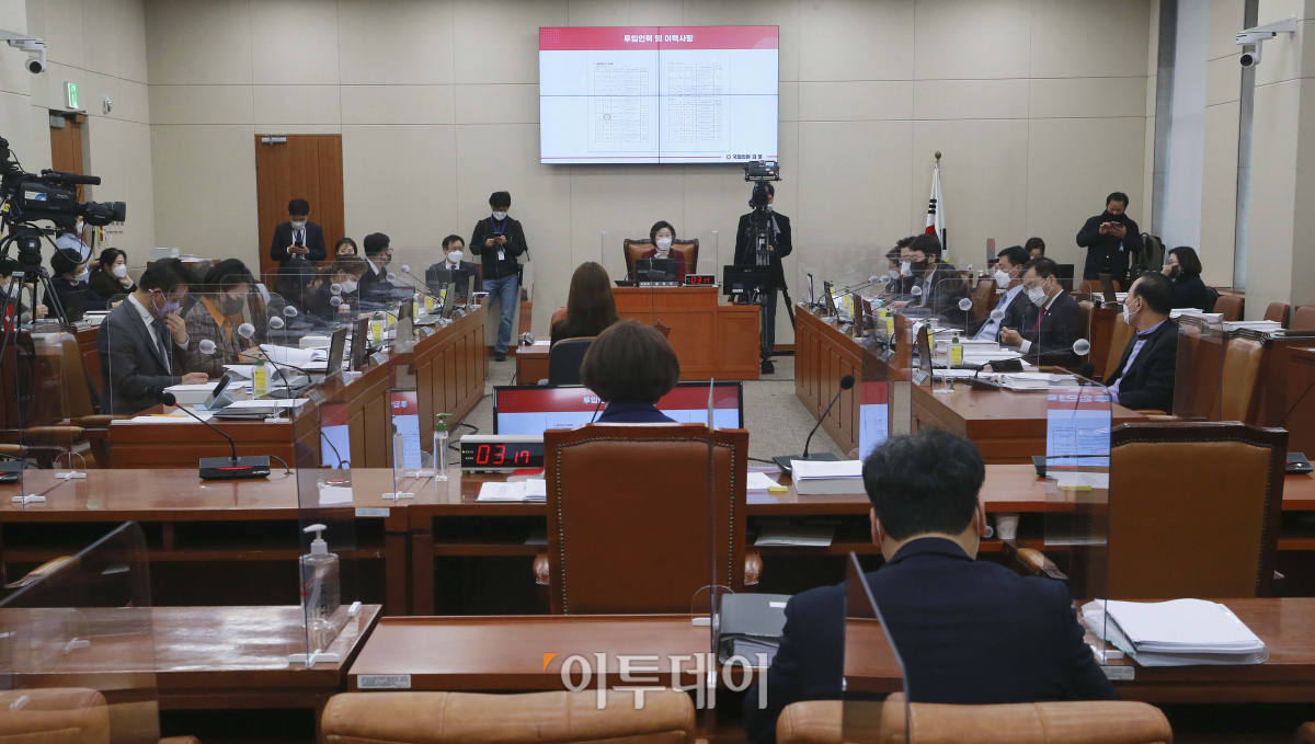20일 오전 서울 여의도 국회 환경노동위원회에서 한정애 환경부 장관 후보자 인사청문회가 열리고 있다.