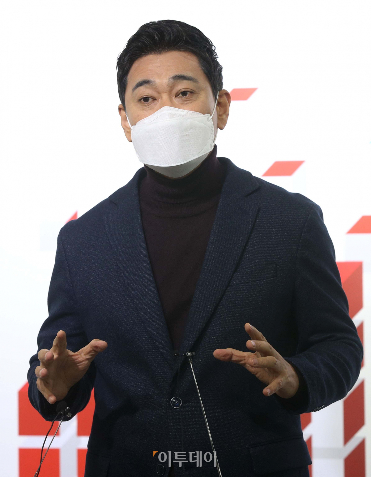 서울시장 출마를 선언한 국민의힘 오신환 전 의원이 20일 오전 서울 여의도 국민의힘 당사를 방문해 서울시장 보궐선거 후보자 등록을 마친 뒤 소감을 말하고 있다.