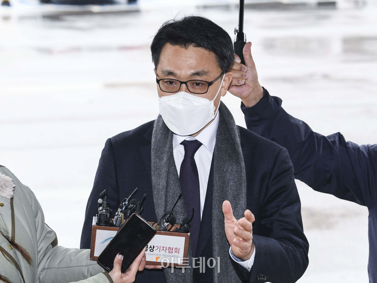 21일 오전 문재인 대통령에게 임명장을 받은 김진욱 고위공직자범죄수사처(공수처) 초대 처장이 같은날 오후 취임식이 예정된 경기 과천시 정부과천청사로 출근하고 있다.