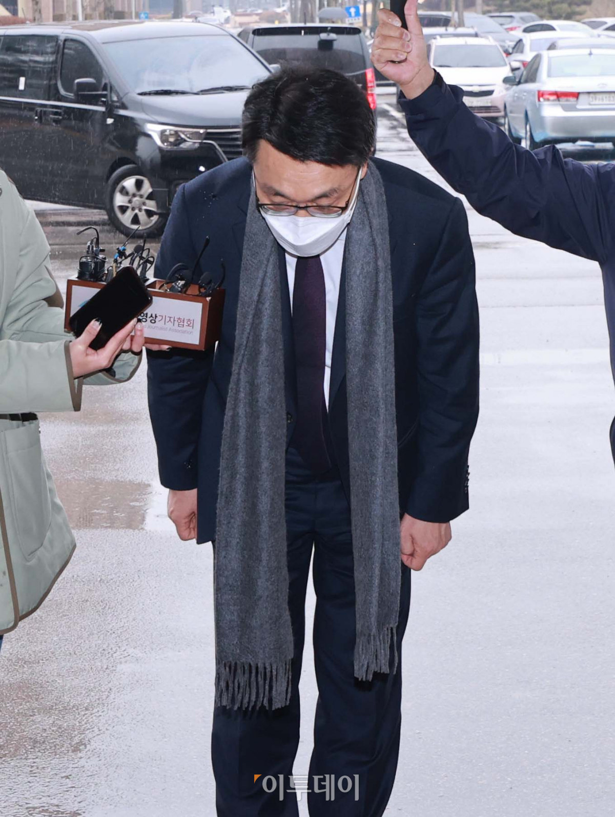 21일 오전 문재인 대통령에게 임명장을 받은 김진욱 고위공직자범죄수사처(공수처) 초대 처장이 같은날 오후 취임식이 예정된 경기 과천시 정부과천청사로 출근하고 있다.