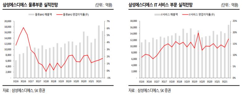 신종 코로나바이러스 감염증(코로나19) 영향에 따른 고객사의 IT 투자 지연으로 IT 서비스 부문 매출은 전년동기 대비 소폭 감소가 예상되나 고객사 확대 효과 및 삼성전자의 수출호조가 이어지며 물류부문은 전년동기 대비 15.5% 증가할 전망이라고 SK증권은 설명했다.