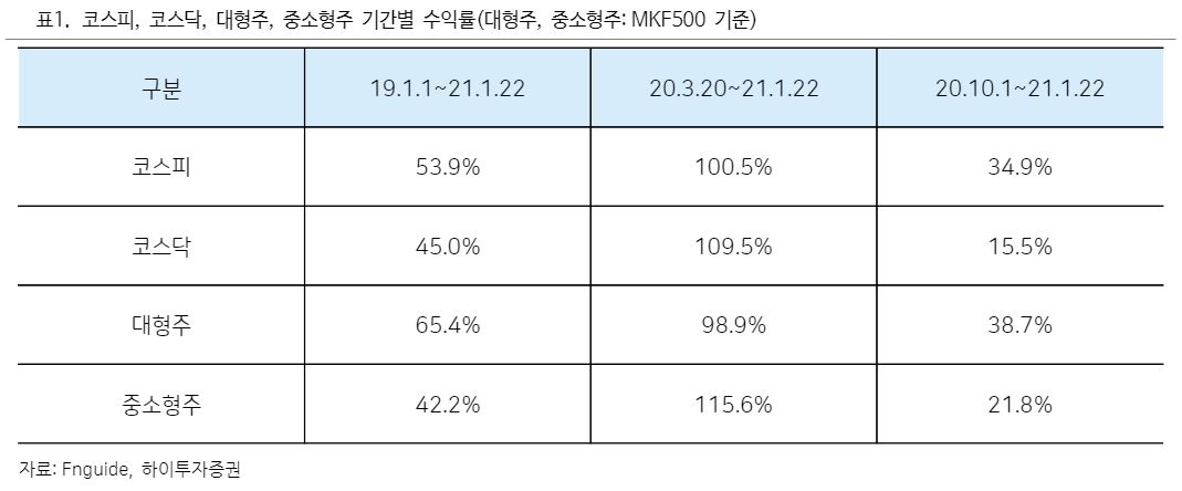 이상헌 하이투자증권 연구원은 "2020년 10월 들어 중소형주 보다 대형주의 상대수익률이 높은 이유는 새로운 산업에 대한 성장 등이 혁신 생태계에서 대형주가 먼저 수혜 받을 것이라는 기대감 때문"이라고 진단했다.