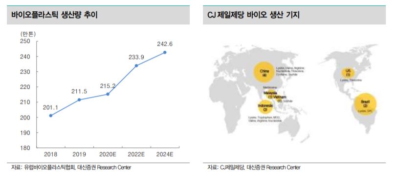 한유정 대신증권 연구원은 "일회용품 사용을 제한하는 국가가 점차 확대될 것으로 전망됨에 따라 CJ제일제당 바이오 사업부문의 신성장동력 확보가 기대된다"고 말했다.