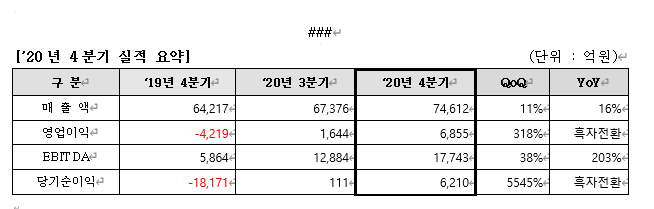 전 분기 대비 매출은 11%, 영업이익은 317% 증가했으며 전년 동기 대비로는 매출 16% 증가, 영업이익은 흑자 전환했다.