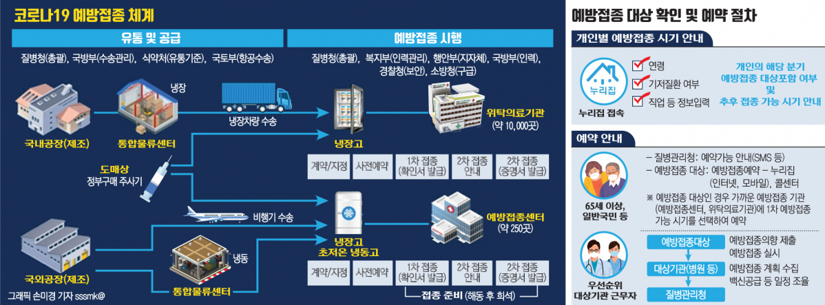 접종 준비는 비교적 순조롭게 진행되고 있다. 최복수 행정안전부 재난관리실장은 “접종센터는 전국적으로 약 250개를 필요로 하는데 실내체육관과 시민회관 등 대규모 공공시설을 중심으로 해서 현재까지 427개소가 후보시설로 선정됐다”며 “위탁의료기관도 애초 목표인 1만 개보다도 많은 1만3317개의 의료기관이 후보로 선정된 상태”라고 말했다.