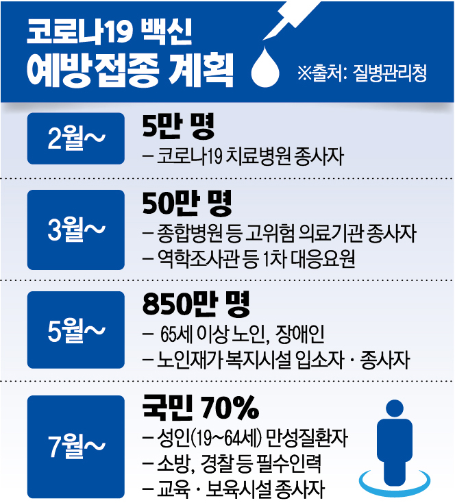 정부는 백신 접종 후 이상반응을 예방하기 위한 시스템도 가동한다. 접종 전 예진을 거쳐 ‘아나필락시스’ 위험군을 선별하는 등 접종 대상자의 건강 상태를 확인한다. 접종 이후엔 15∼30분간 접종 기관에 머물면서 이상반응 여부를 살피도록 하는 등 가이드라인을 제시했다.