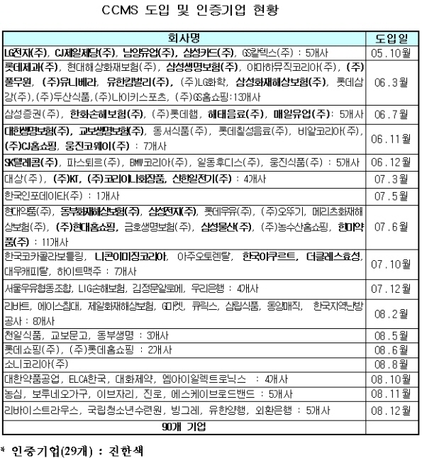 CCMS 인증 수여식은 2007년 상반기 부터 시작해 이번에 4회째 개최하는 것으로 앞서 18개 기업이 인증을 부여 받았다.
