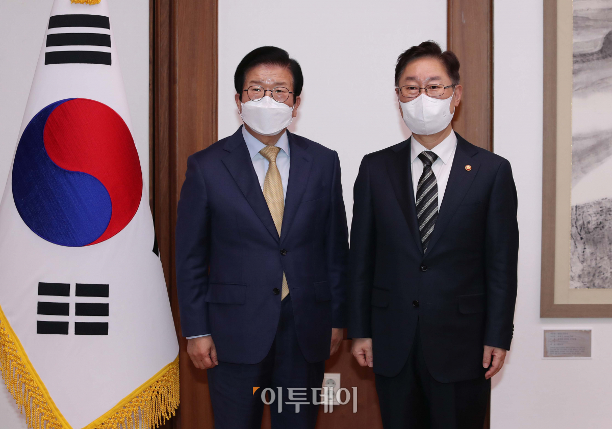 [포토] 박병석 국회의장 예방한 박범계 법무부 장관