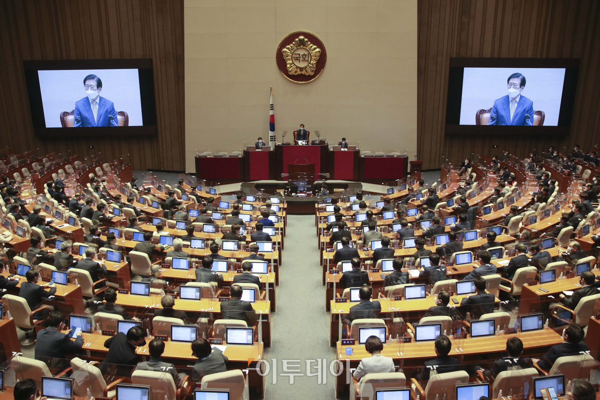 박병석 국회의장이 1일 오후 서울 여의도 국회에서 열린 제384회국회(임시회) 개회식에서 인사말을 하고 있다.