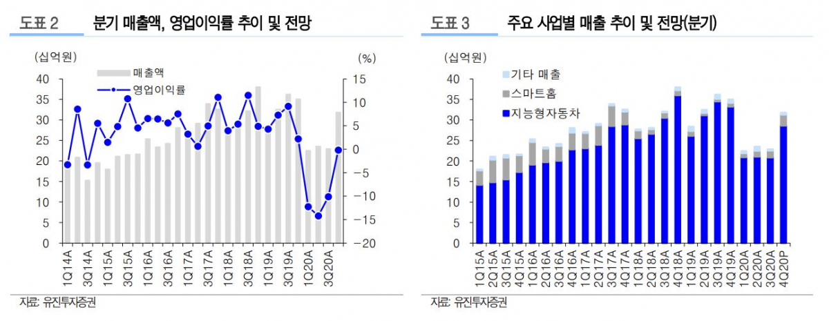 이어 박 연구원은 “이는 기아차향 지능형 자동차 매출이 급속한 회복을 보이기 때문”이라면서 “지난해 1~3분기 동안 200억 원 초반 매출이 4분기에 286억 원까지 증가했다”고 덧붙였다.