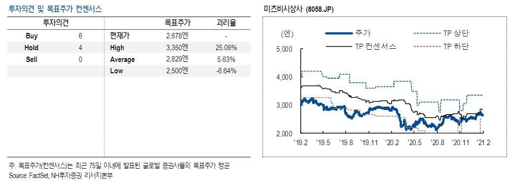 NH투자증권은 4일 "일본 미츠비시상사가 다양한 사업포트폴리오를 보유한 만큼 디지털전환을 전사적으로 접목하기 위해 노력 중"이라며 "우선 음식료와 유통에 적용하고 향후 도시개발(스마트시티) 및 자원개발로 확대 예정"이라고 분석했다.