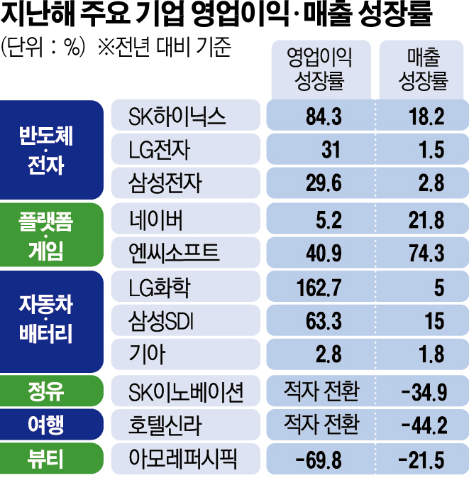삼성전자는 매출이 230조 원을 넘어서며 역대 세 번째, 영업이익은 역대 네 번째로 높았다. SK하이닉스는 지난해 4분기 매출과 영업이익은 각각 7조9662억 원, 9659억 원을 냈다.