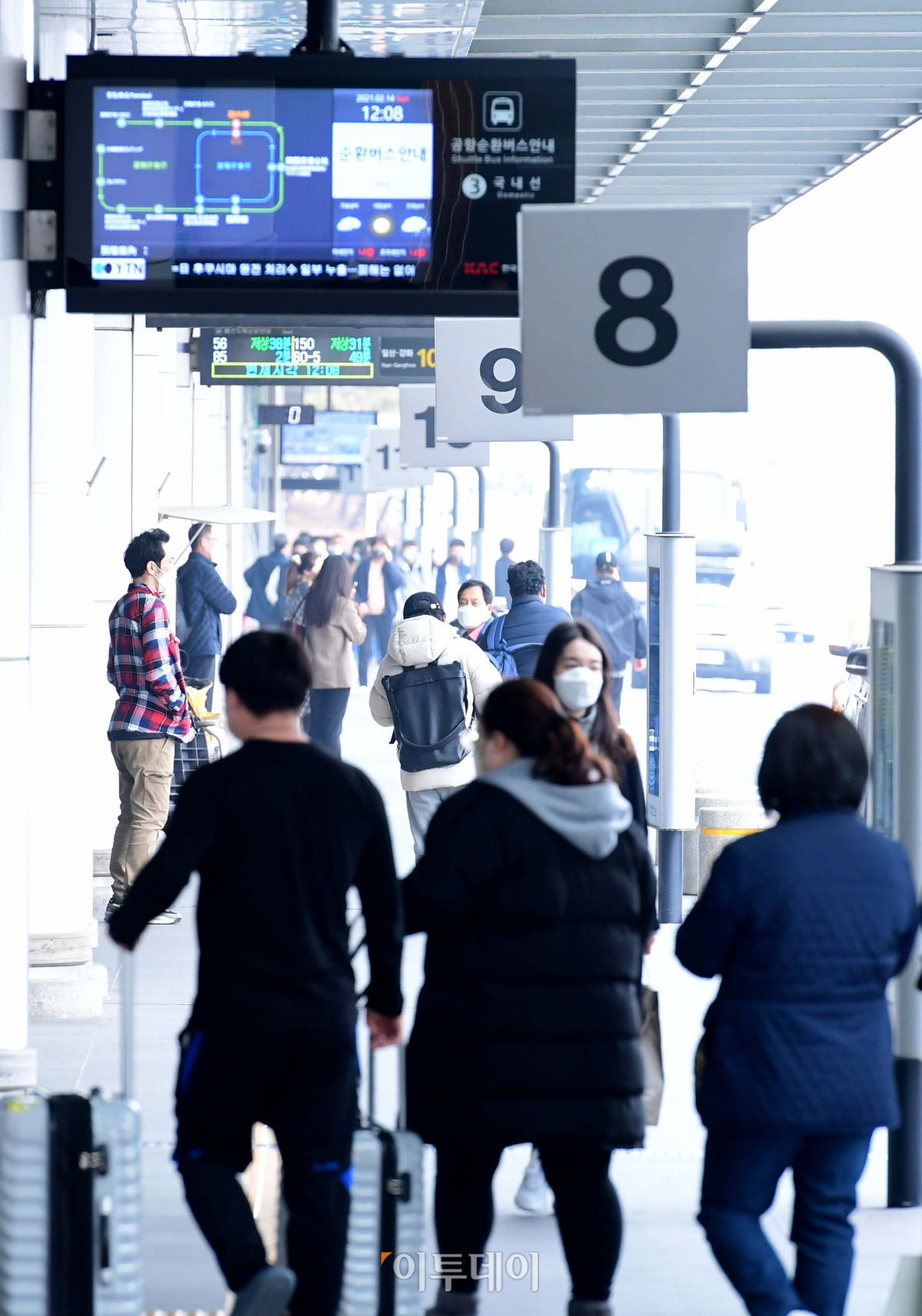 설 연휴 마지막 날인 14일 서울 강서구 김포공항 국내선 청사가 귀경객들로 붐비고 있다.