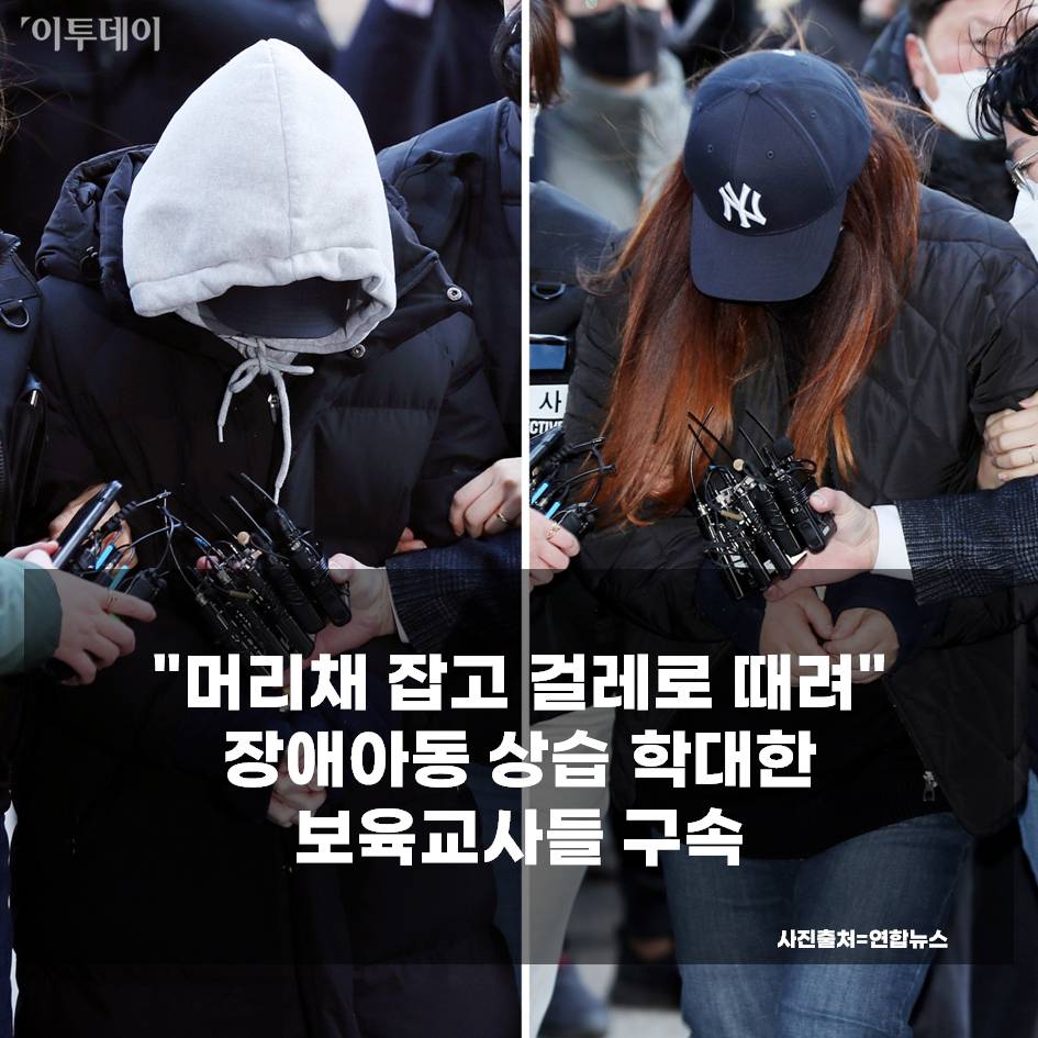 장애아동을 포함한 원생 10명을 상습적으로 학대한 혐의를 받는 인천 한 국공립 어린이집의 보육교사 2명이 경찰에 구속됐습니다.