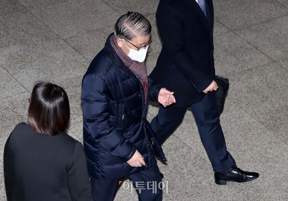 거액의 회삿돈을 빼돌려 비자금을 조성했다는 의혹 등을 받는 최신원 SK네트웍스 회장이 17일 서울 서초구 서울중앙지방법원에서 열린 구속 전 피의자 심문(영장실질심사)에 출석하고 있다.