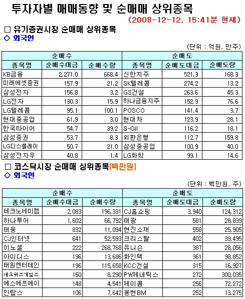 종목별로는 유가증권시장에서 KB금융(2271억원)을 대거 사들였고 미래에셋증권(157억원), 삼성전자(156억원), LG전자(130억원), LG텔레콤(95억원), 현대중공업(95억원), 한국타이어(54억원) 등을 순매수했다.