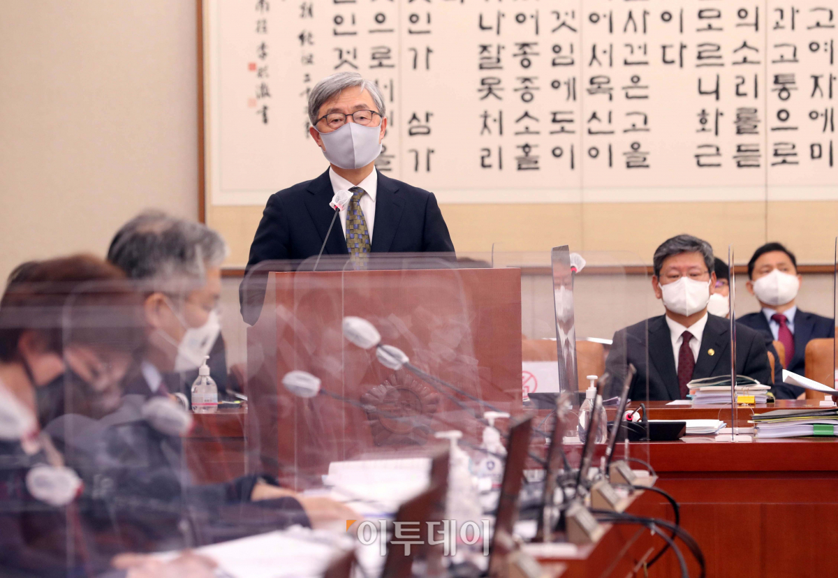 최재형 감사원장이 22일 오전 서울 여의도 국회에서 열린 법제사법위원회 전체회의에 출석해 업무보고를 하고 있다.