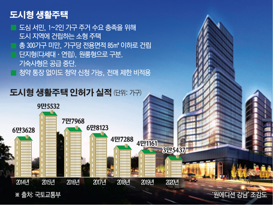 도시형 생활주택은 300가구 미만으로 이뤄진 소형 공동주택(가구당 전용면적 85㎡)을 말한다. 2009년 서민과 1~2인 가구 주거 안정을 위해 도입됐다. 유형별로 원룸형과 단지형, 기숙사형으로 나뉘는데 원룸형이 가장 많이 공급됐다. 다른 유형보다 전ㆍ월세를 놓기 좋아서다.