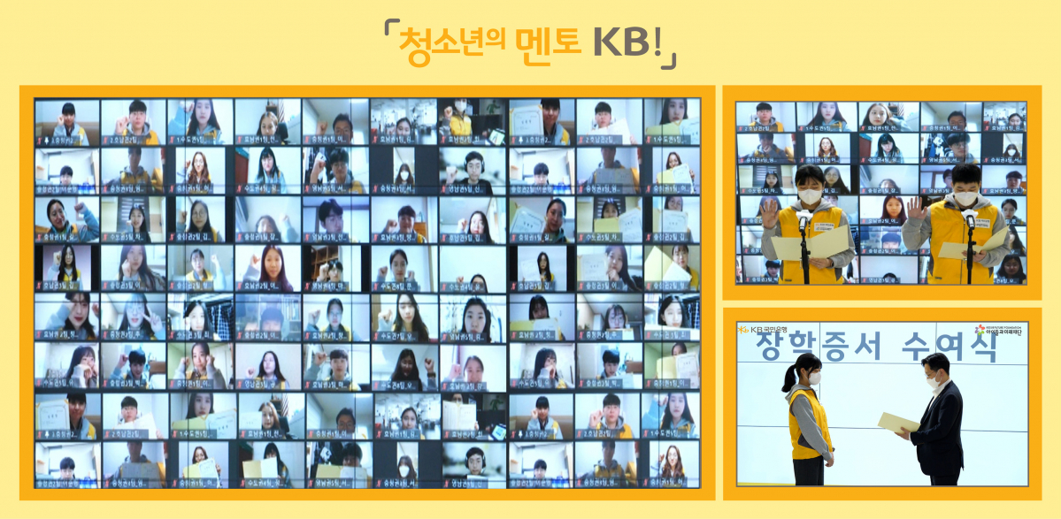 '청소년의 멘토 KB!' 학습멘토링 사업은 학습교육 및 문화체험 활동을 지원하는 프로그램이다. 앞으로 일 년간 160명의 대학생 봉사단이 320명의 중학생을 대상으로 화상 교육 시스템을 활용해 주 2회 학습멘토링을 진행한다.